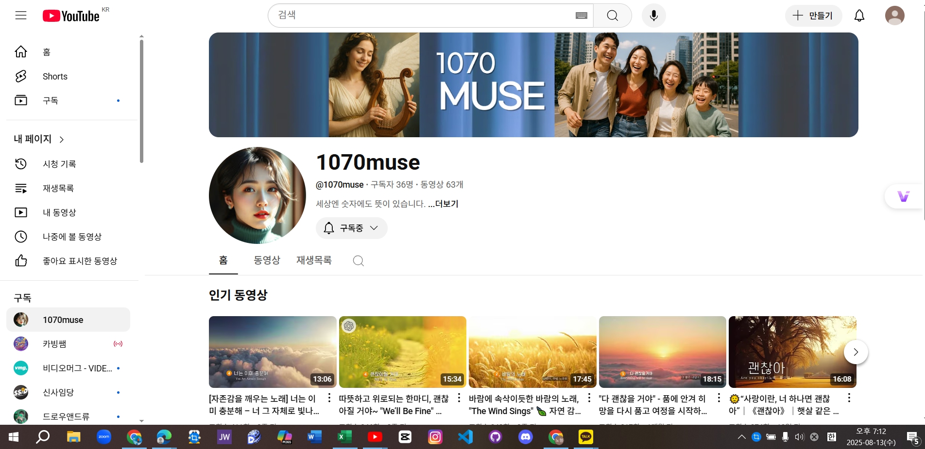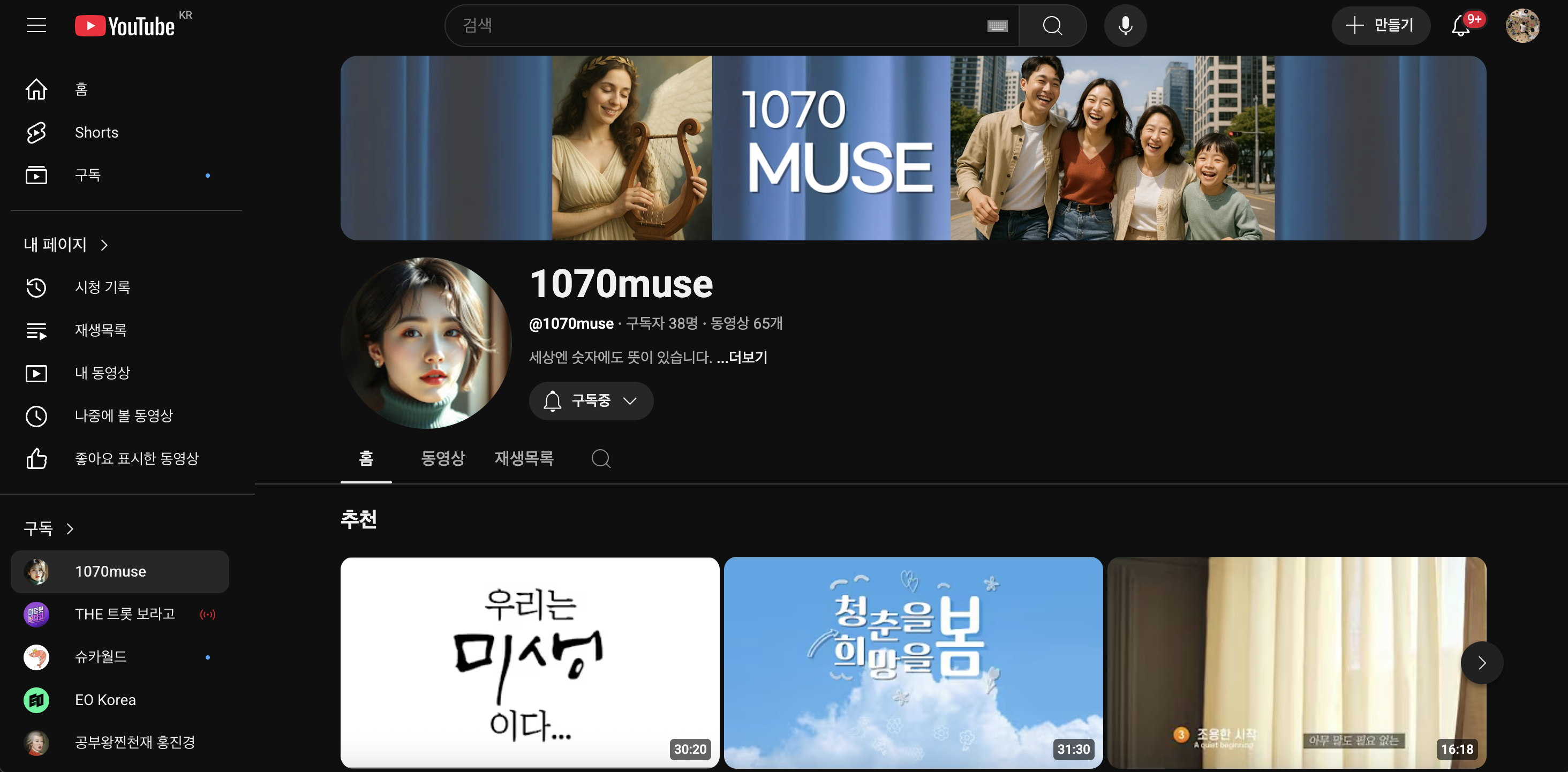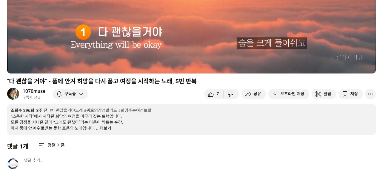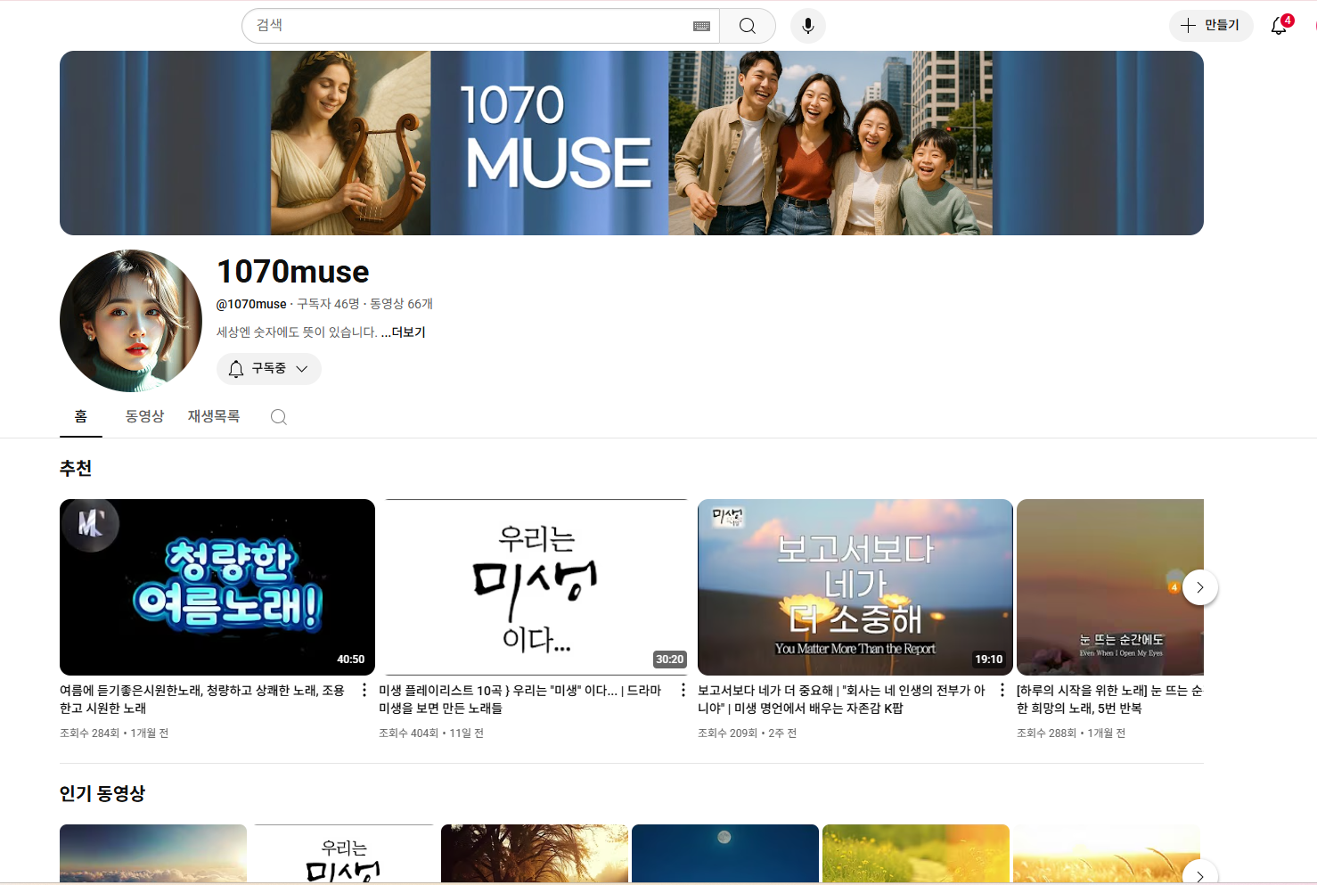 아래 이미지를 클릭해서 '구독' 버튼을 눌러 1070muse 구독신청하신 분에게