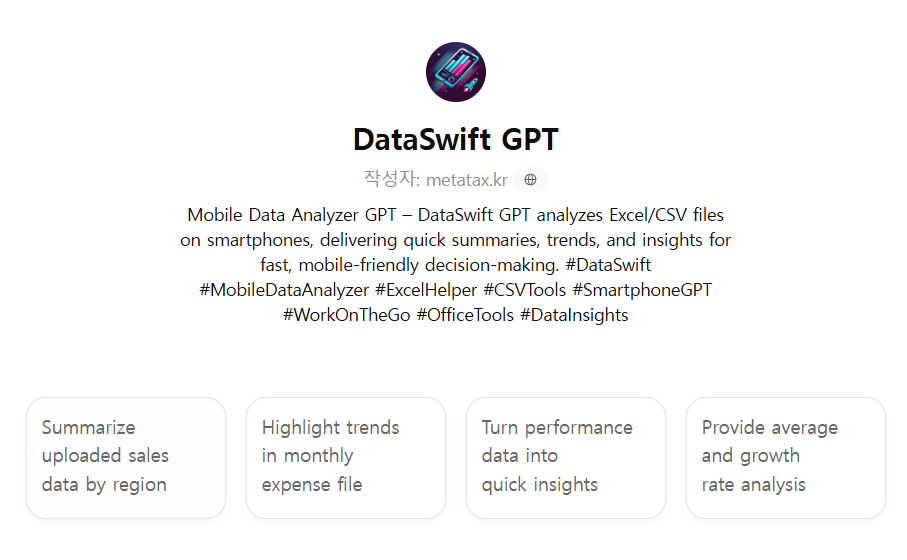 #DataSwift #MobileDataAnalyzer #ExcelHelper #CSVTools #SmartphoneGPT #WorkOnTheGo #OfficeTools #DataInsights #BusinessAnalytics #Efficiency