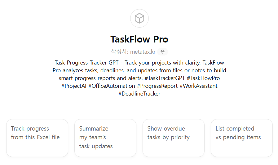 #TaskTrackerGPT #TaskFlowPro #ProjectAI #OfficeAutomation #ProgressReport #WorkAssistant #DeadlineTracker