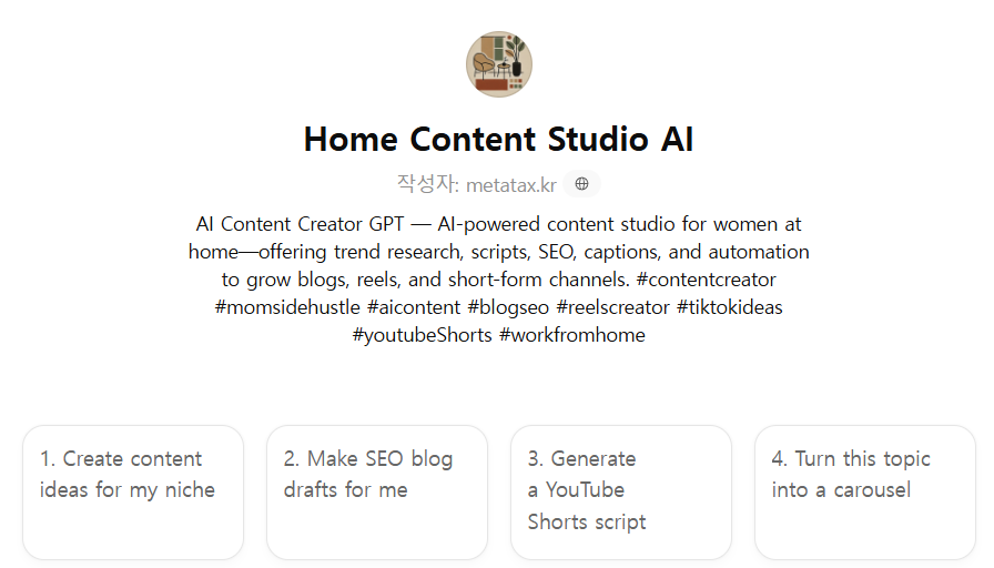 경단녀가 집에서 블로그·SNS·쇼츠·카드뉴스 등을 자동 생성해 수익을 낼 수 있도록 설계된 GPT