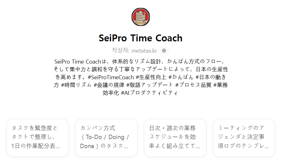 #SeiProTimeCoach #生産性向上 #かんばん #日本の働き方 #時間リズム #会議の規律 #敬語アップデート #プロセス品質 #業務効率化 #AIプロダクティビティ