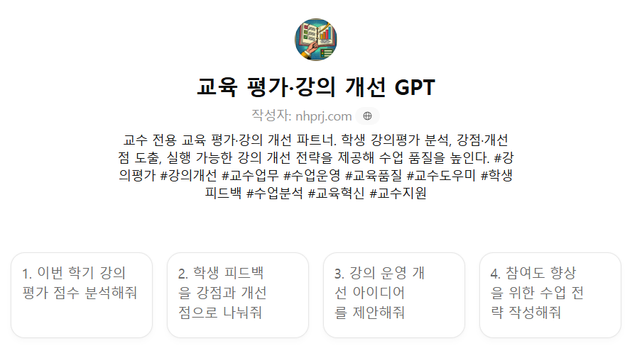 #강의평가 #강의개선 #교수업무 #수업운영 #교육품질 #교수도우미 #학생피드백 #수업분석 #교육혁신 #교수지원