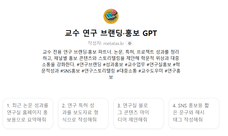 https://chatgpt.com/g/g-68e64f74059c81918cd05c6700a3201c-gyosu-yeongu-beuraending-hongbo-gpt