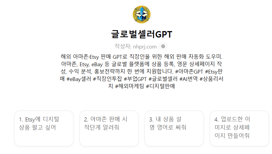 #아마존GPT #Etsy판매 #eBay셀러 #직장인투잡 #부업GPT #글로벌셀러 #AI번역 #상품리서치 #해외마케팅 #디지털판매
