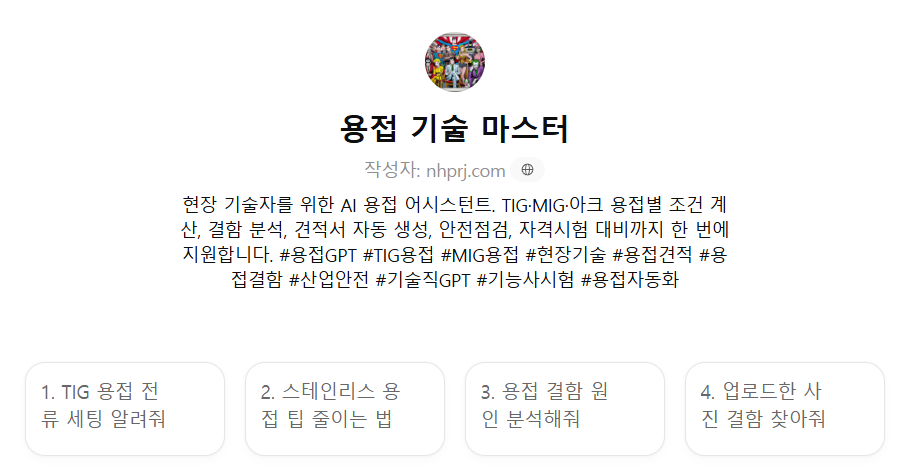 #용접GPT #TIG용접 #MIG용접 #현장기술 #용접견적 #용접결함 #산업안전 #기술직GPT #기능사시험 #용접자동화