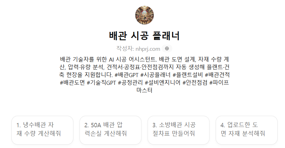 #배관GPT #시공플래너 #플랜트설비 #배관견적 #배관도면 #기술직GPT #공정관리 #설비엔지니어 #안전점검 #파이프마스터