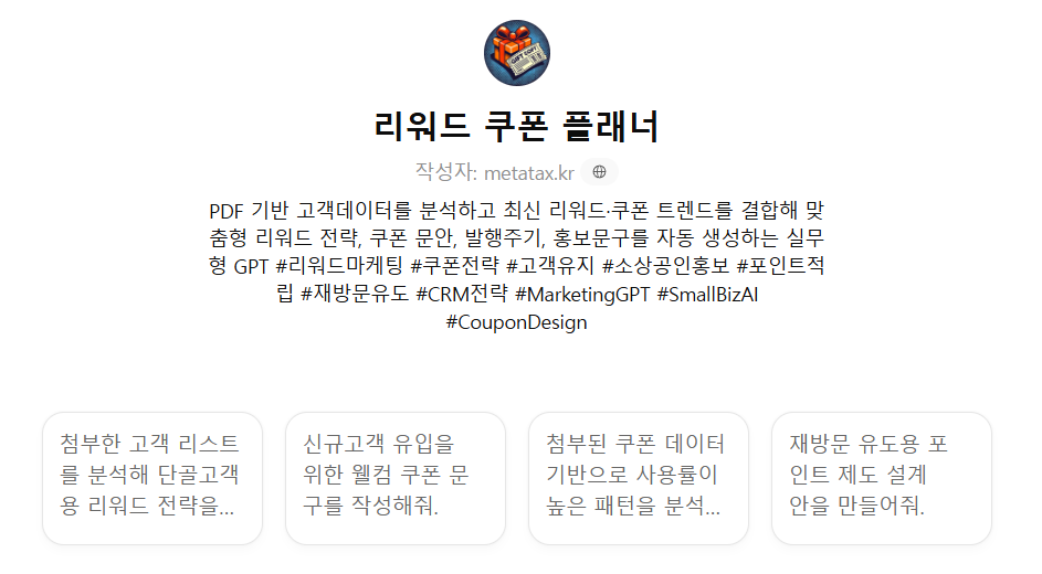 #리워드마케팅 #쿠폰전략 #고객유지 #소상공인홍보 #포인트적립 #재방문유도 #CRM전략 #MarketingGPT #SmallBizAI #CouponDesign